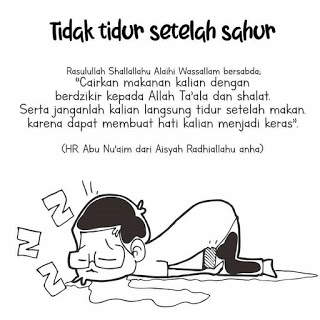 3. Lebih dekat dengan waktu shubuh. Dalam beberapa kasus, banyak orang tidur kembali setelah makan sahur, misalnya karena waktu Shubuh masih lama. Kebiasaan seperti ini berisiko membuat seorang muslim bangun kesiangan dan terlambat melakukan sholat subuh.